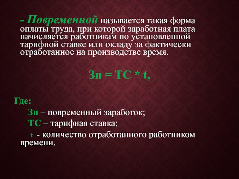 Слайд 41 - Повременной называется такая форма оплаты труда, при которой заработная