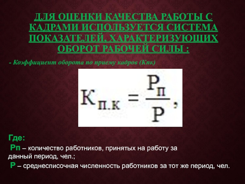 ДЛЯ ОЦЕНКИ КАЧЕСТВА РАБОТЫ С КАДРАМИ ИСПОЛЬЗУЕТСЯ СИСТЕМА ПОКАЗАТЕЛЕЙ, ХАРАКТЕРИЗУЮЩИХ ОБОРОТ