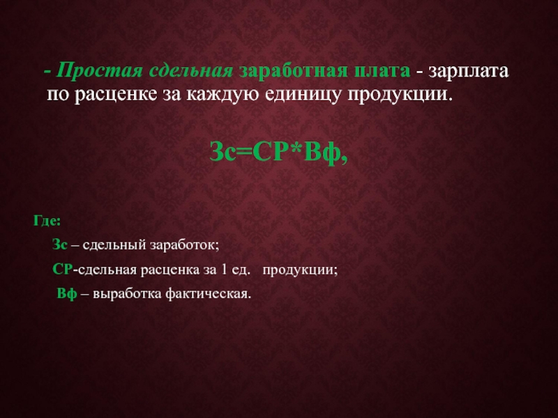 Слайд 37 - Простая сдельная заработная плата - зарплата по расценке за