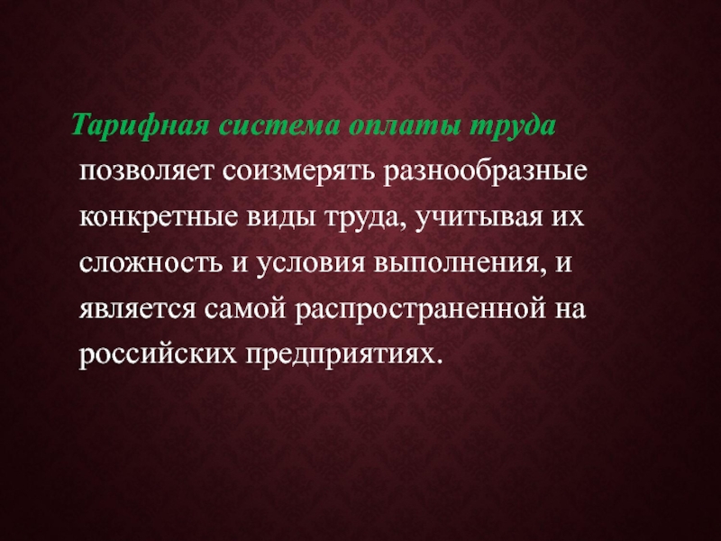 Слайд 44 Тарифная система оплаты труда позволяет соизмерять разнообразные конкретные виды труда,