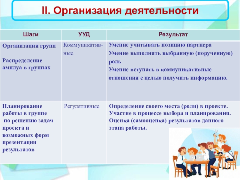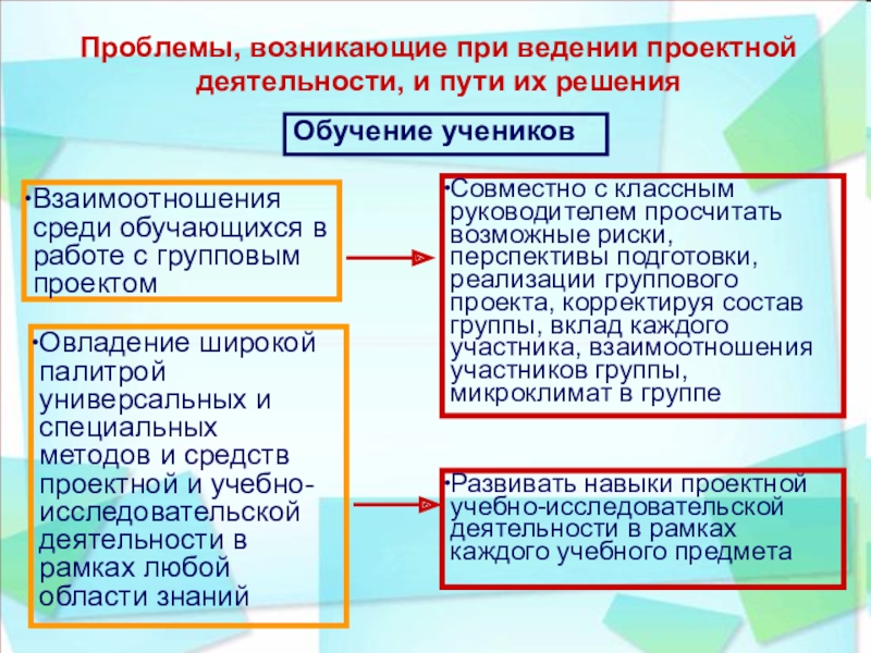 Совместно с классным руководителем просчитать возможные риски, перспективы подготовки, реализации группового проекта, корректируя состав группы, вклад каждого участника, взаимоотношения участников группы, микроклимат в группе