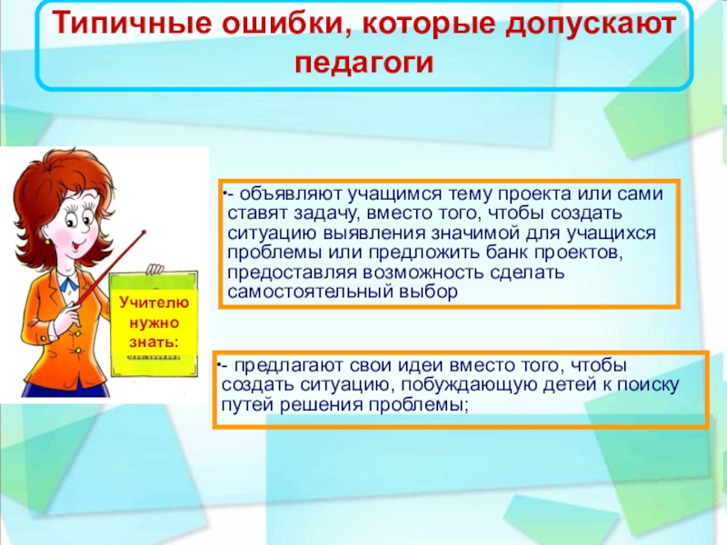 - предлагают свои идеи вместо того, чтобы создать ситуацию, побуждающую детей к поиску путей решения проблемы;