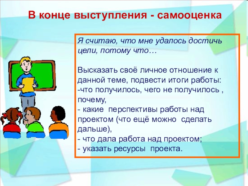 Создавать небольшие ситуации успеха в рамках работы над проектом, показывая ребёнку, что у него уже получается что-то реальное, важное, а главное – он это делает и достигает положительного результата сам