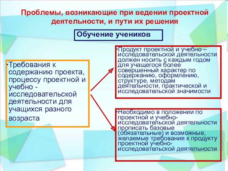 Необходимо в положении по проектной и учебно-исследовательской деятельности прописать базовые (обязательные) и возможные, желаемые требования к продукту проектной учебно-исследовательской деятельности