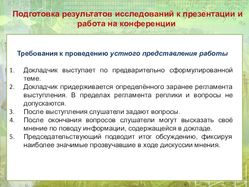 Слайд 20Подготовка результатов исследований к презентации и работа на конференции