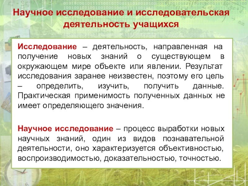 Слайд 8Научное исследование и исследовательская деятельность учащихся