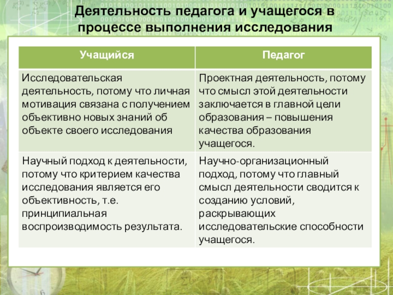 Слайд 12Деятельность педагога и учащегося в процессе выполнения исследования