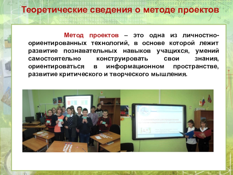 это одна из личностно-ориентированных технологий, в основе которой лежит развитие познавательных навыков учащихся, умений самостоятельно конструировать свои знания, ориентироваться в информационном пространстве, развитие критического и творческого мышления.