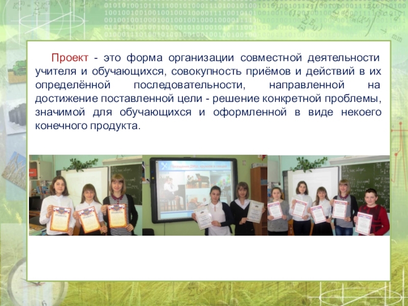 Слайд 7 Проект - это форма организации совместной деятельности учителя и