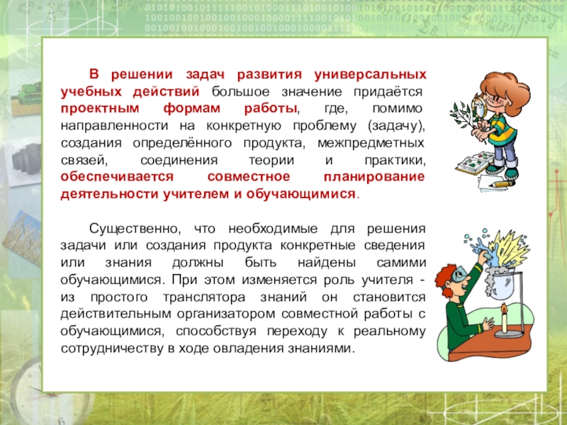 Слайд 6В решении задач развития универсальных учебных действий большое значение придаётся проектным