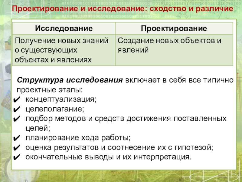 новых знаний о существующем в окружающем мире объекте или явлении. Результат исследования заранее неизвестен, поэтому его цель – определить, изучить, получить данные. Практическая применимость полученных данных не имеет определяющего значения.