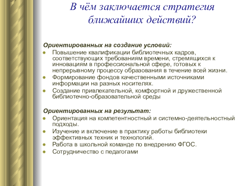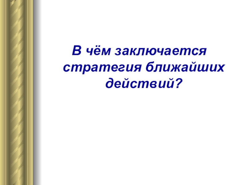 Слайд 23В чём заключается стратегия ближайших действий?