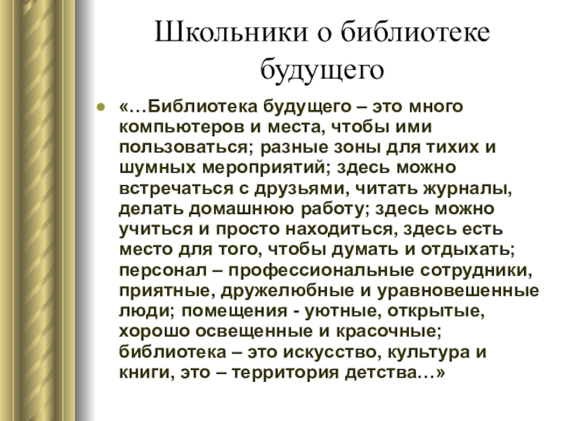 Слайд 27Школьники о библиотеке будущего