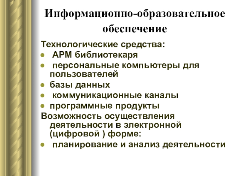 Слайд 20Информационно-образовательное обеспечение