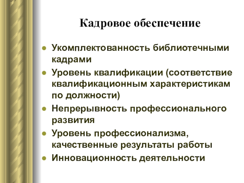 Слайд 16Кадровое обеспечение
