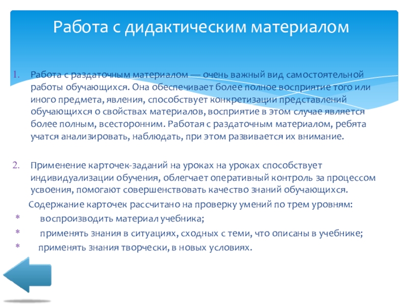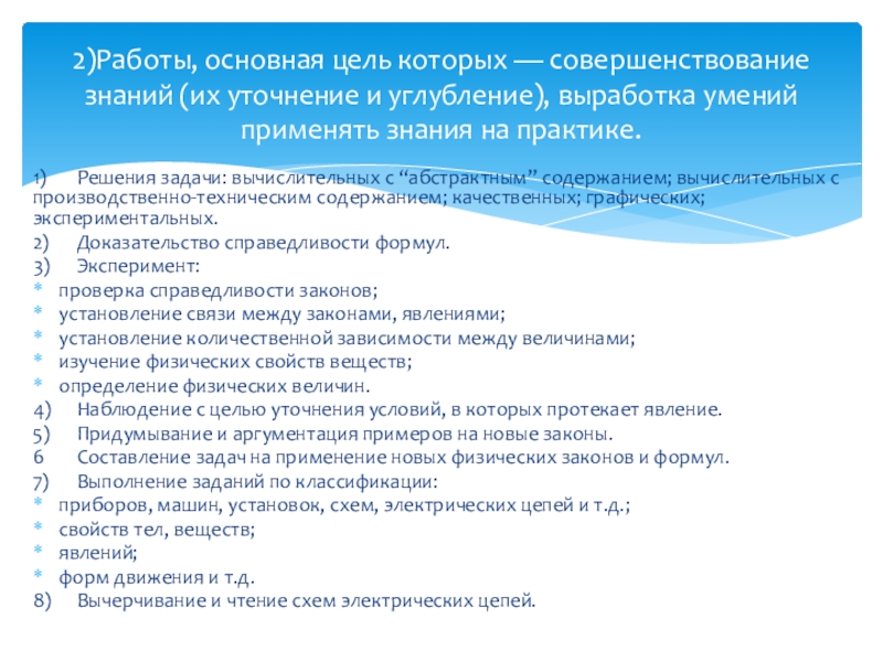 2)Работы, основная цель которых — совершенствование знаний (их уточнение и углубление), выработка умений применять знания на практике.