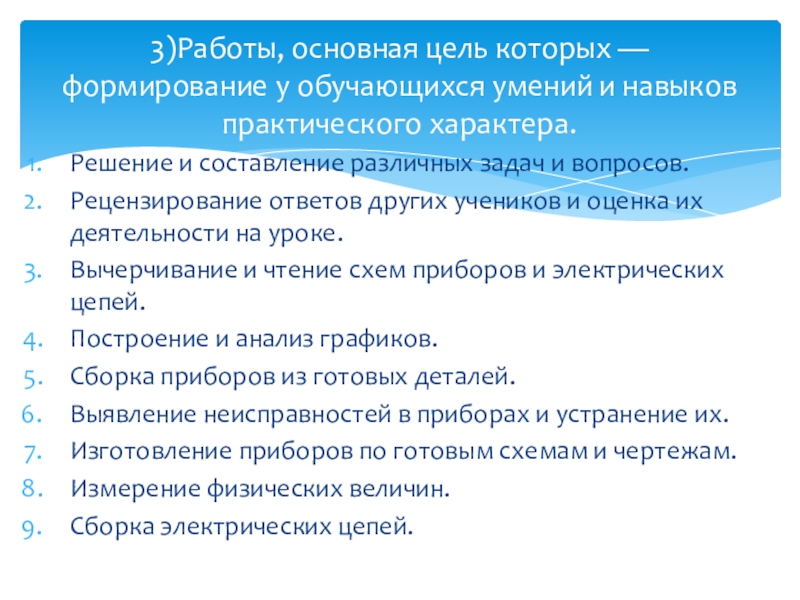 3)Работы, основная цель которых — формирование у обучающихся умений и навыков практического характера.