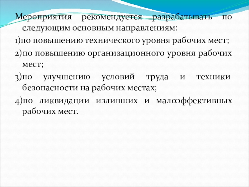 Слайд 16Мероприятия рекомендуется разрабатывать по следующим основным направлениям: