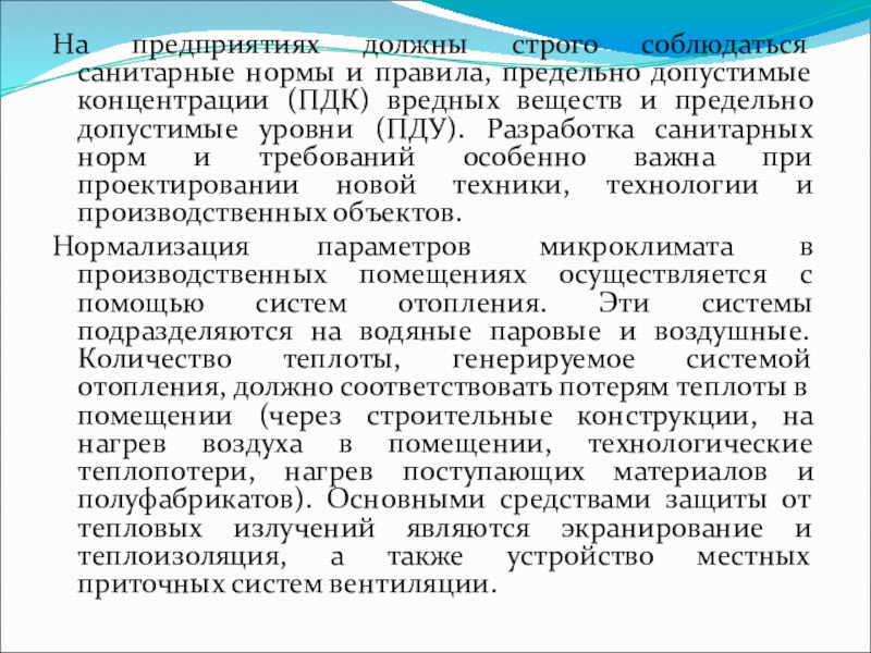 Слайд 7На предприятиях должны строго соблюдаться санитарные нормы и правила, предельно допустимые