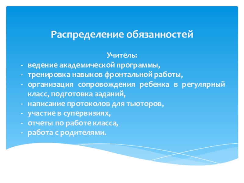 Слайд 10Распределение обязанностей