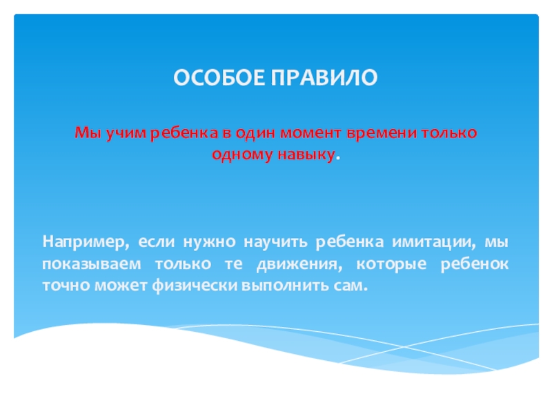 Мы учим ребенка в один момент времени только одному навыку.