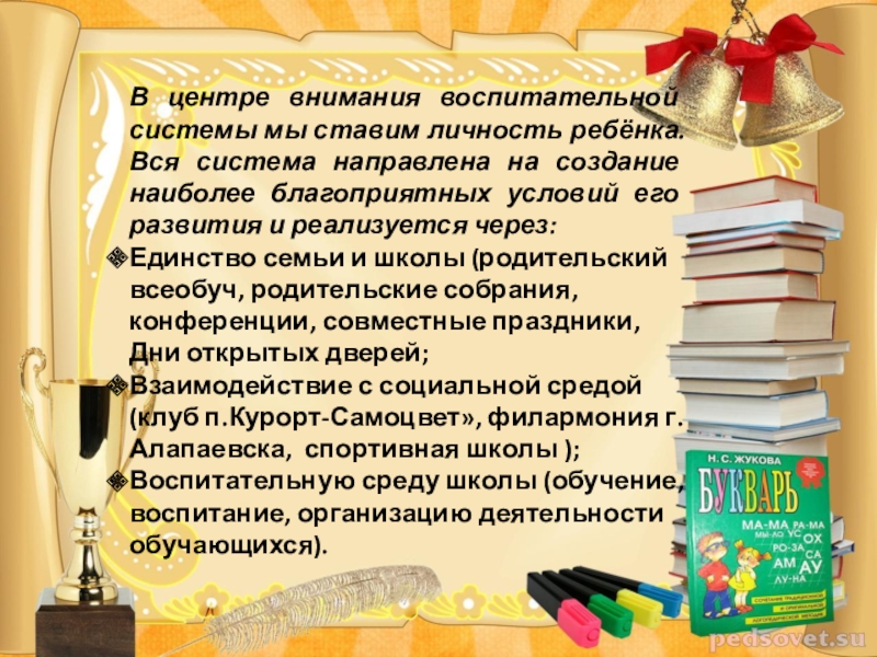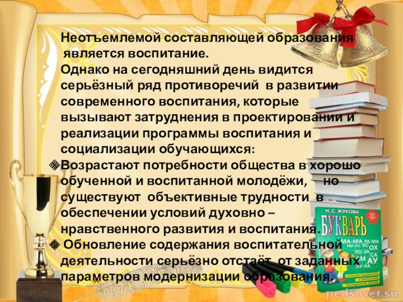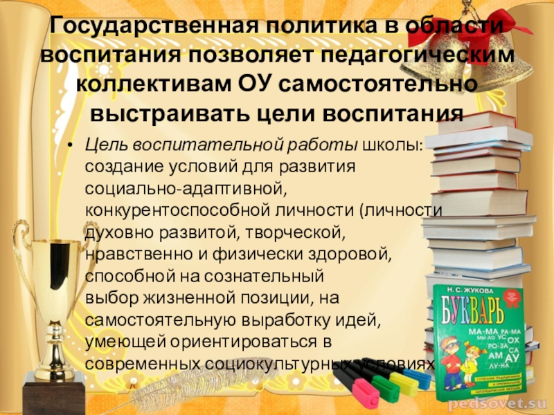 Государственная политика в области воспитания позволяет педагогическим коллективам ОУ самостоятельно выстраивать цели воспитания