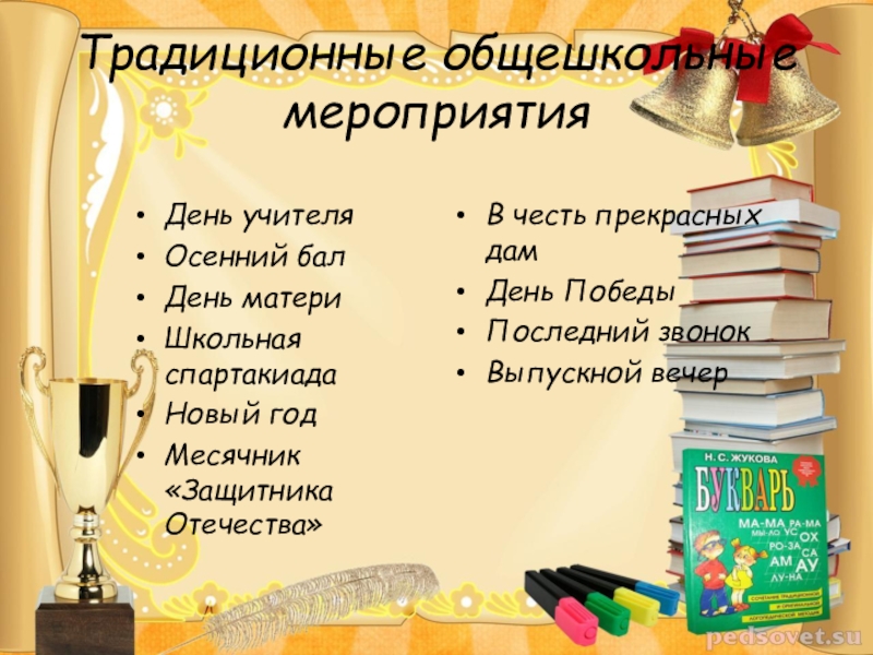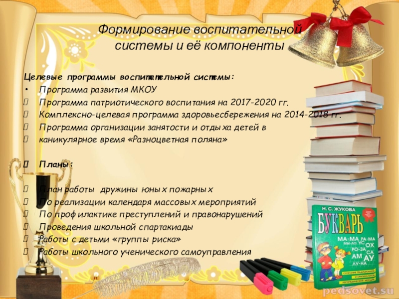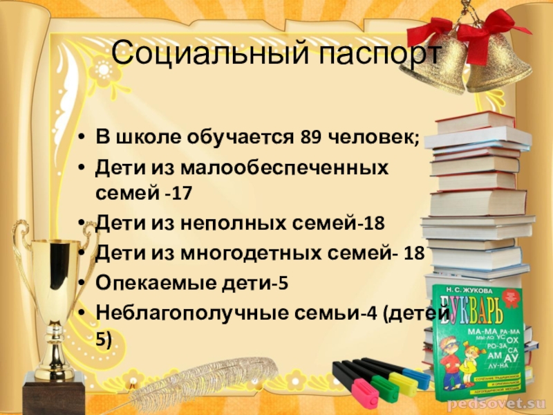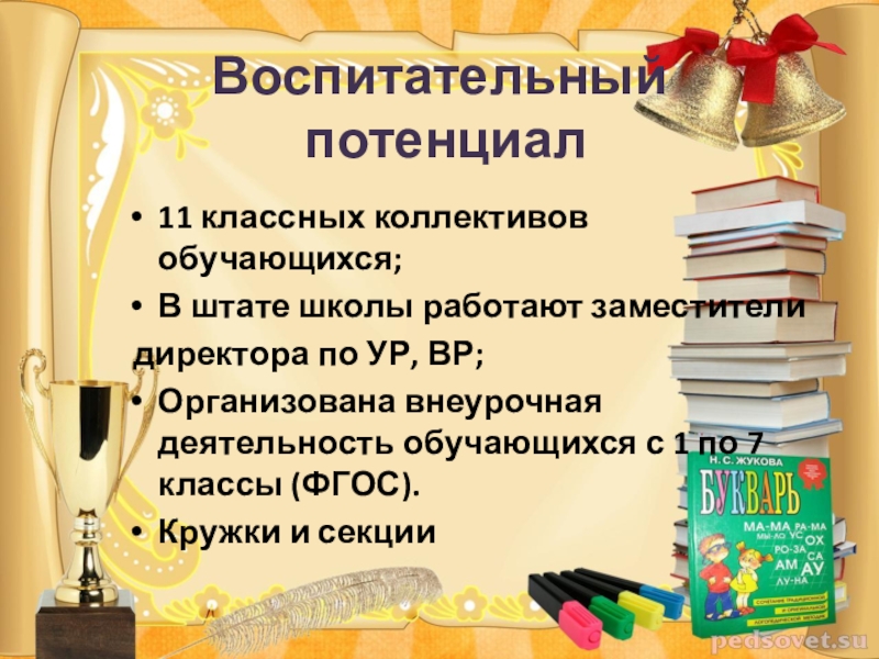 Это сайт презентаций, где можно хранить и обмениваться своими презентациями, докладами, проектами, шаблонами в формате PowerPoint с другими пользователями. Мы помогаем школьникам, студентам, учителям, преподавателям хранить и обмениваться учебными материалами.