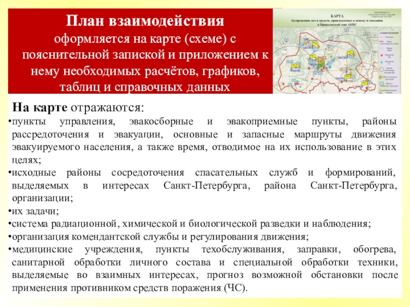 медицинские учреждения, пункты техобслуживания, заправки, обогрева, санитарной обработки личного состава и специальной обработки техники, выделяемые во взаимных интересах, прогноз возможной обстановки после применения противником средств поражения (ЧС).