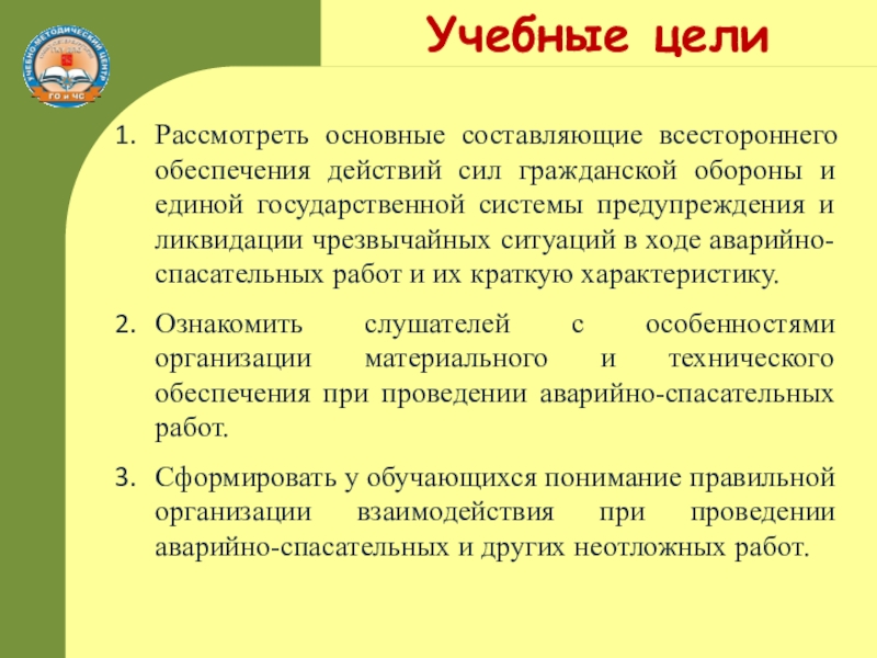 создавать, оснащать и всесторонне готовить формирования спасательных служб к работе в условиях ведения ГО;
