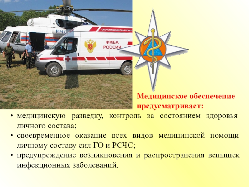 Медицинское обеспечение предусматривает: