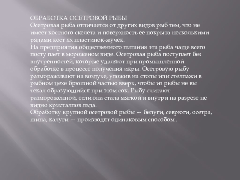 Слайд 10ОБРАБОТКА ОСЕТРОВОЙ РЫБЫ
