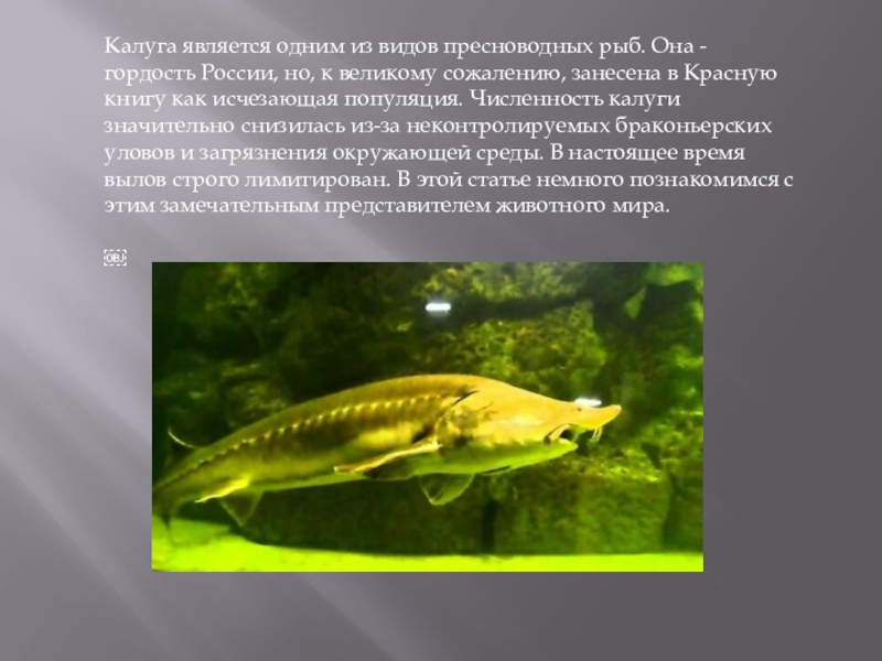 Слайд 2Калуга является одним из видов пресноводных рыб. Она - гордость России,