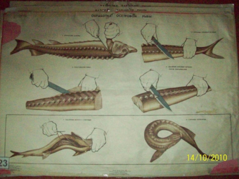 Обработку крупной осетровой рыбы — белуги, севрюги, осетра, шипа, калуги — производят одинаковым способом .