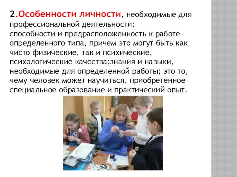 Слайд 72.Особенности личности, необходимые для профессиональной деятельности: