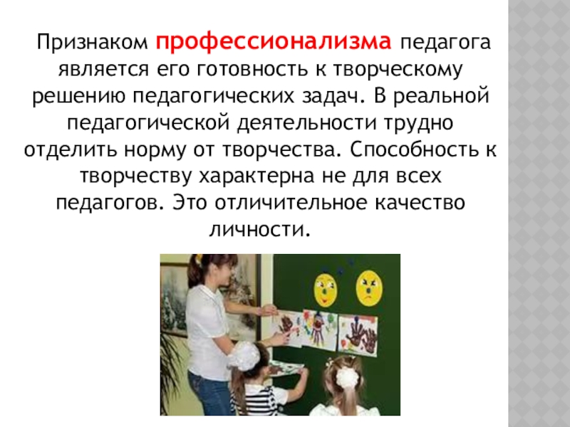 Слайд 18 Признаком профессионализма педагога является его готовность к творческому решению педагогических