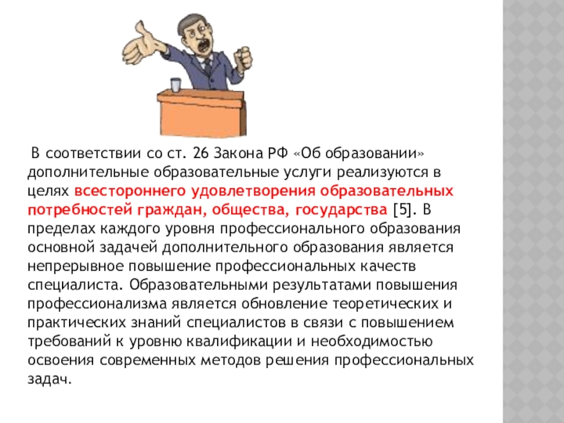 Слайд 3 В соответствии со ст. 26 Закона РФ «Об образовании» дополнительные