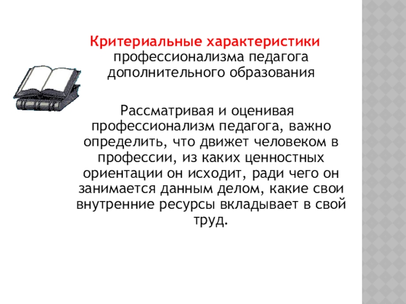 Слайд 11Критериальные характеристики профессионализма педагога дополнительного образования