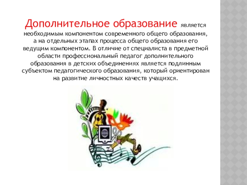 Слайд 2Дополнительное образование является необходимым компонентом современного общего образования, а на отдельных