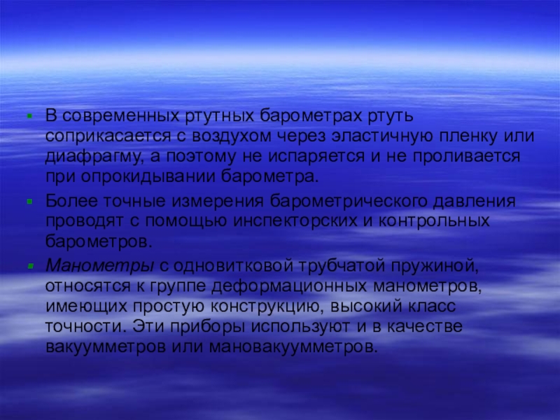 В современных ртутных барометрах ртуть соприкасается с воздухом через эластичную пленку