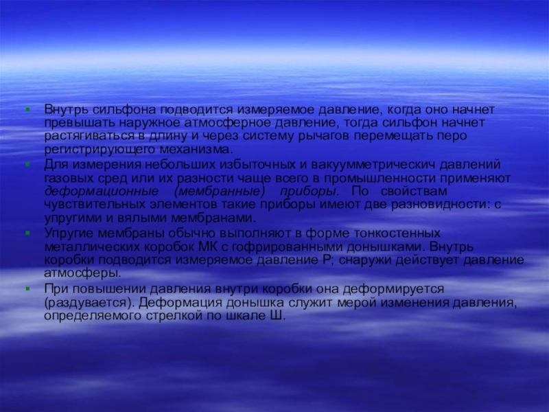 Внутрь сильфона подводится измеряемое давление, когда оно начнет превышать наружное атмосферное