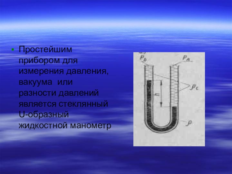 Простейшим прибором для измерения давления, вакуума или разности давлений является стеклянный