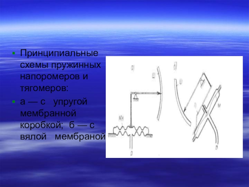 Принципиальные схемы пружинных напоромеров и тягомеров: