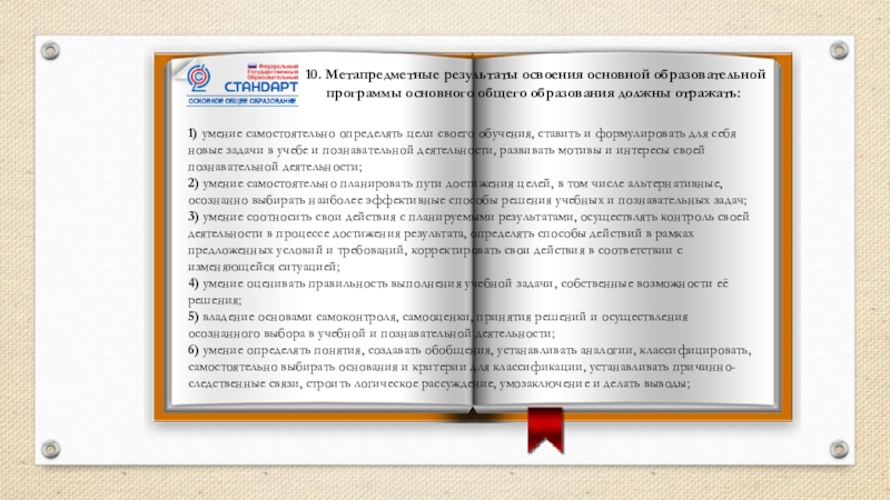 10. Метапредметные результаты освоения основной образовательной программы основного общего образования должны отражать: