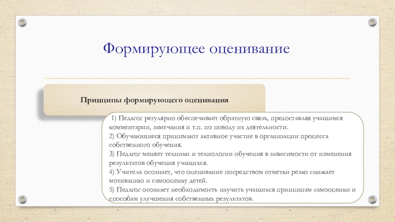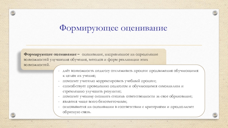 основывается на оценивании в соответствии с критериями и предполагает обратную связь.