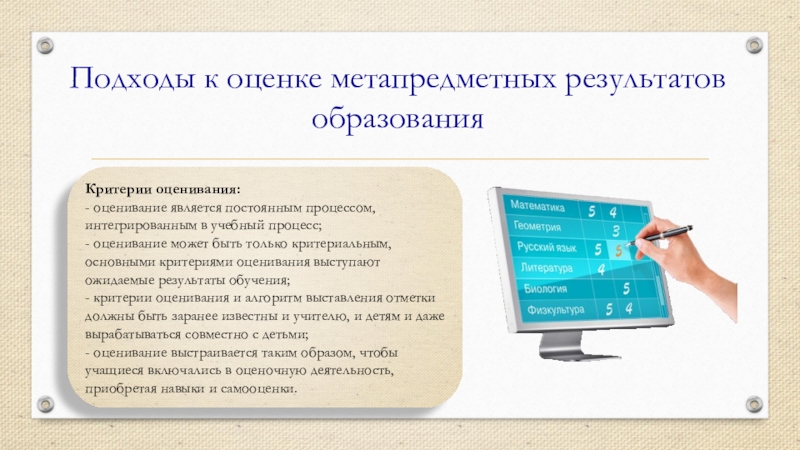 достижение метапредметных результатов может рассматриваться как инструментальная основа, средство решения, условие успешности выполнения учебных и учебно-практических задач средствами учебных предметов