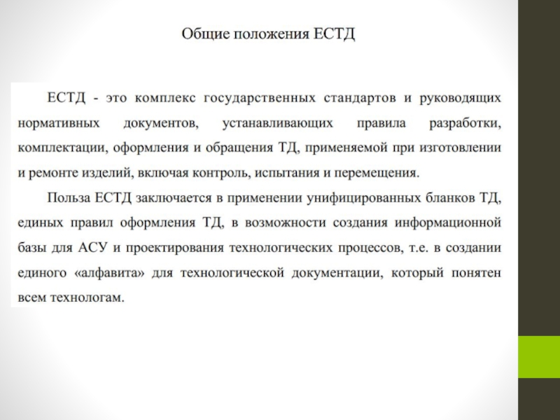 Презентация, доклад на тему Основные положения ЕСТД