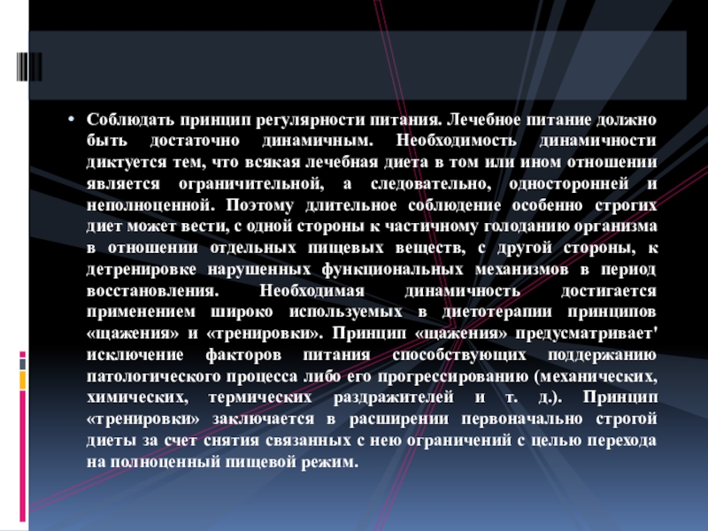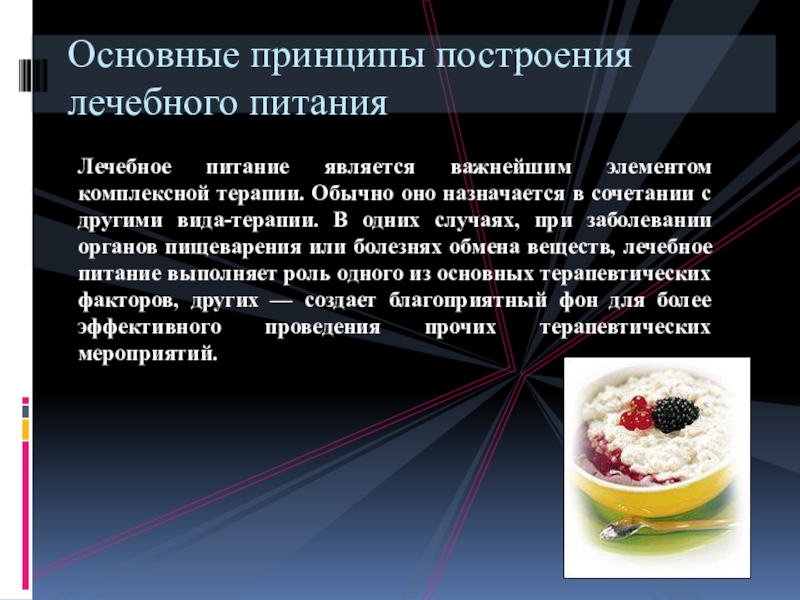 Основные принципы построения лечебного питания