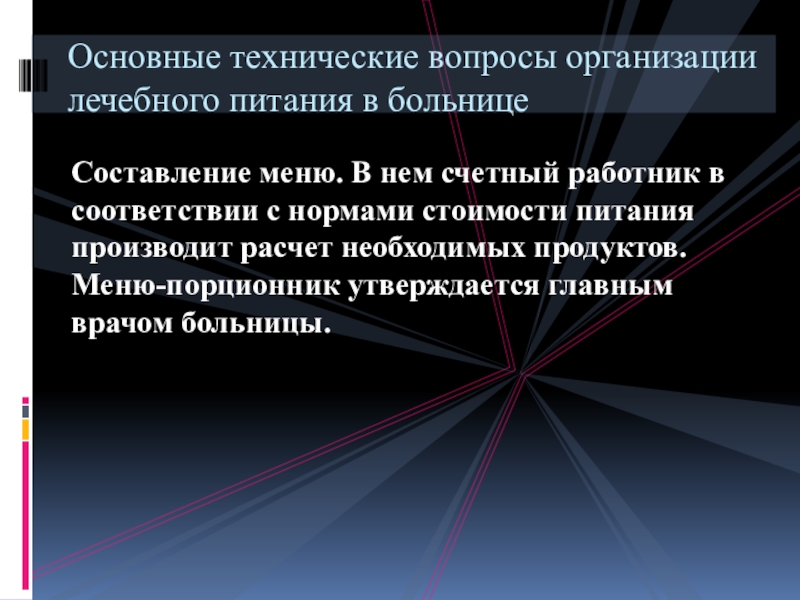 Основные технические вопросы организации лечебного питания в больнице