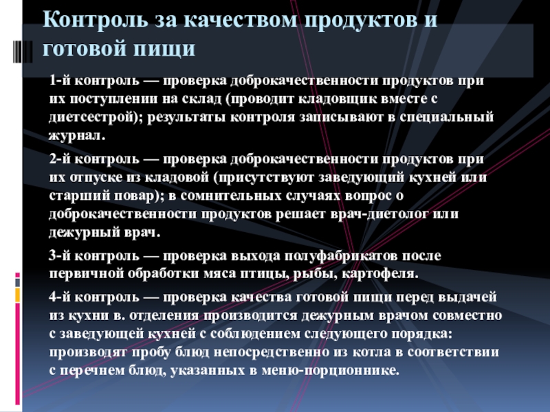 Контроль за качеством продуктов и готовой пищи