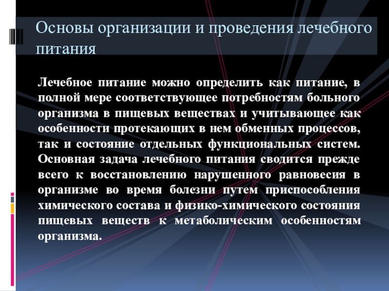 Основы организации и проведения лечебного питания